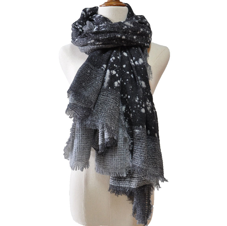 羊毛水溶加圈圈紗噴繪披肩